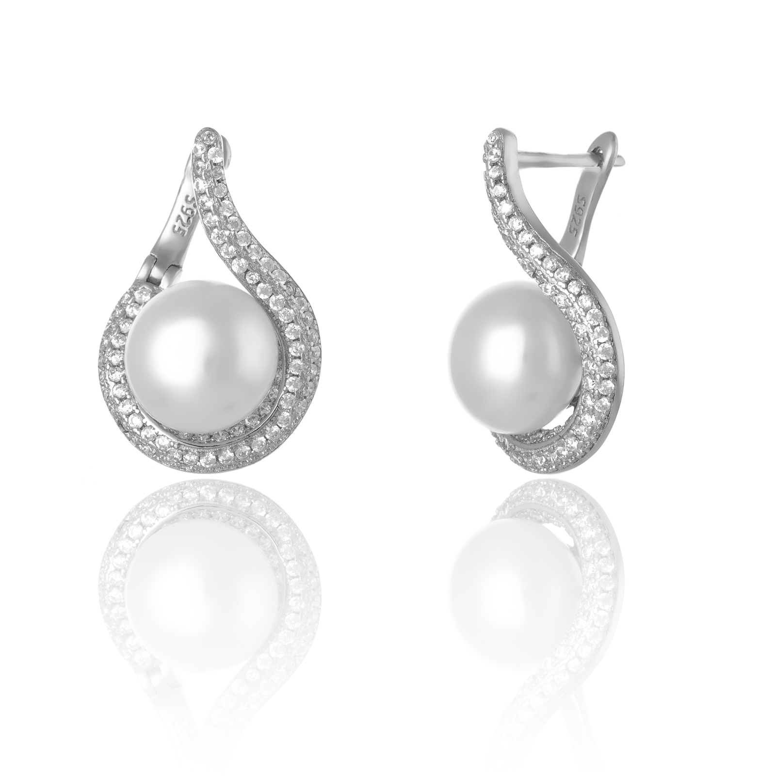 Cercei din argint 925 rodiat, Piatra : perla de laborator si cubic zirconia, Culoare : alb , transparent, Sonis Silver