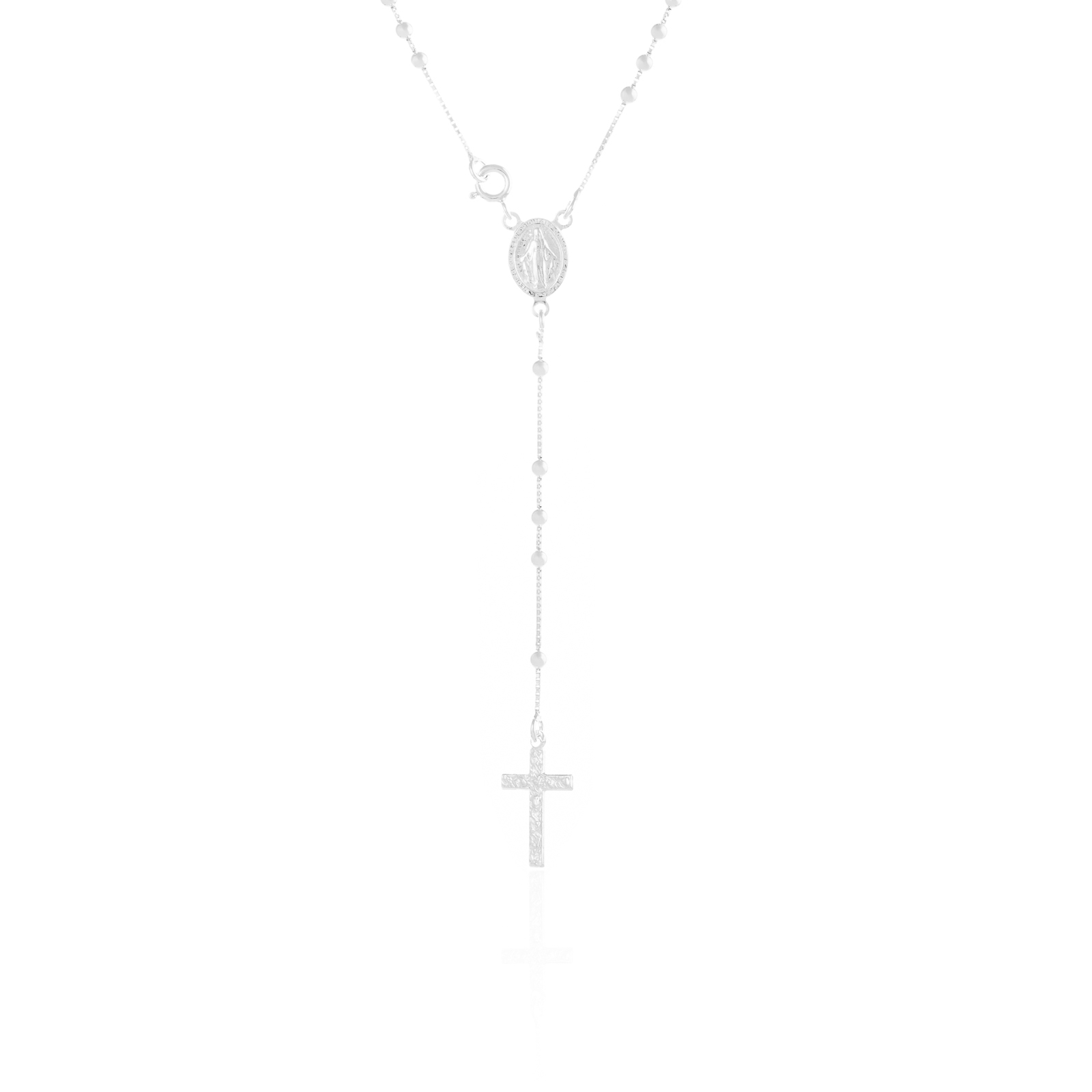 Dimensiuni: medalion :L:1 cm, l :8 mm, cruce : 2 cm, l : 12 mm, lungime lant intre elemente : 6 cm, contine: 59 bilute
